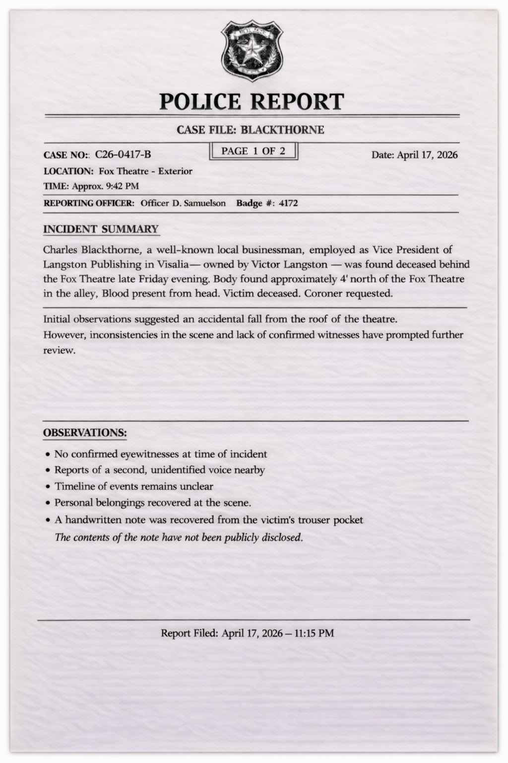 Investigators uncovered records tied to Charles Blackthorne’s inner circle.