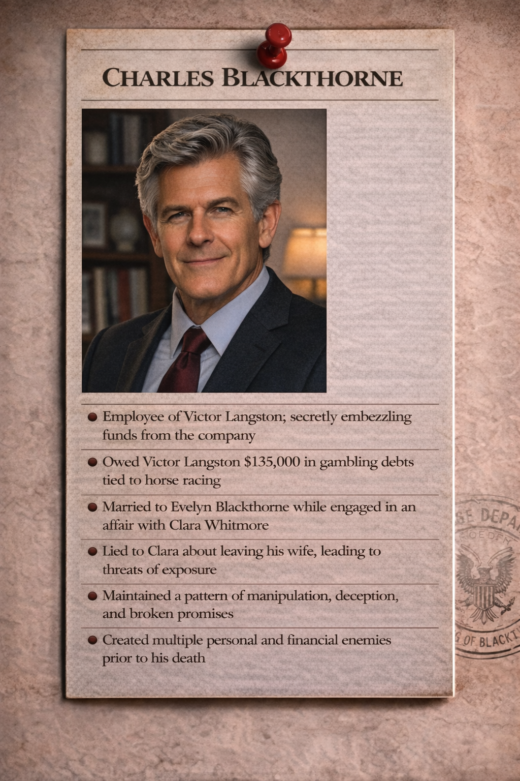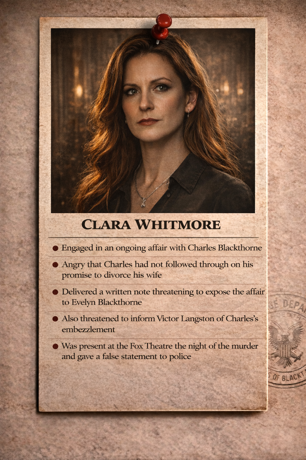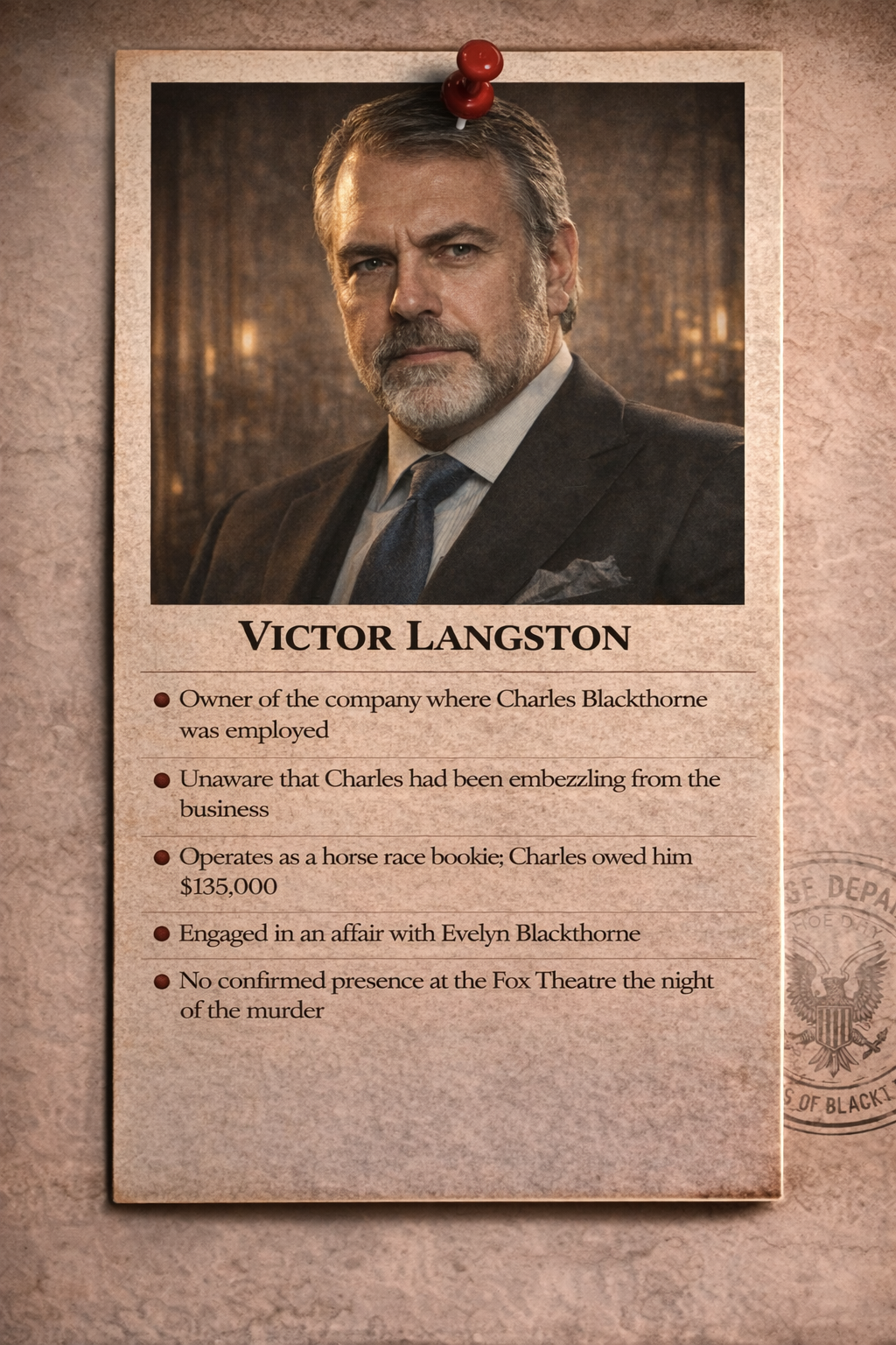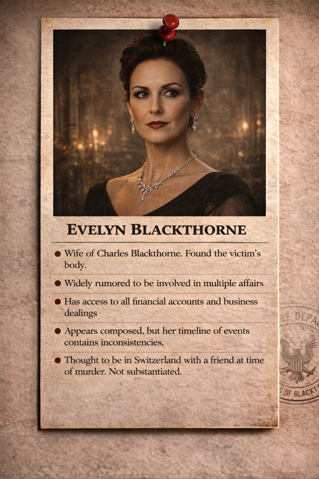 Review all evidence carefully before making your final accusation.